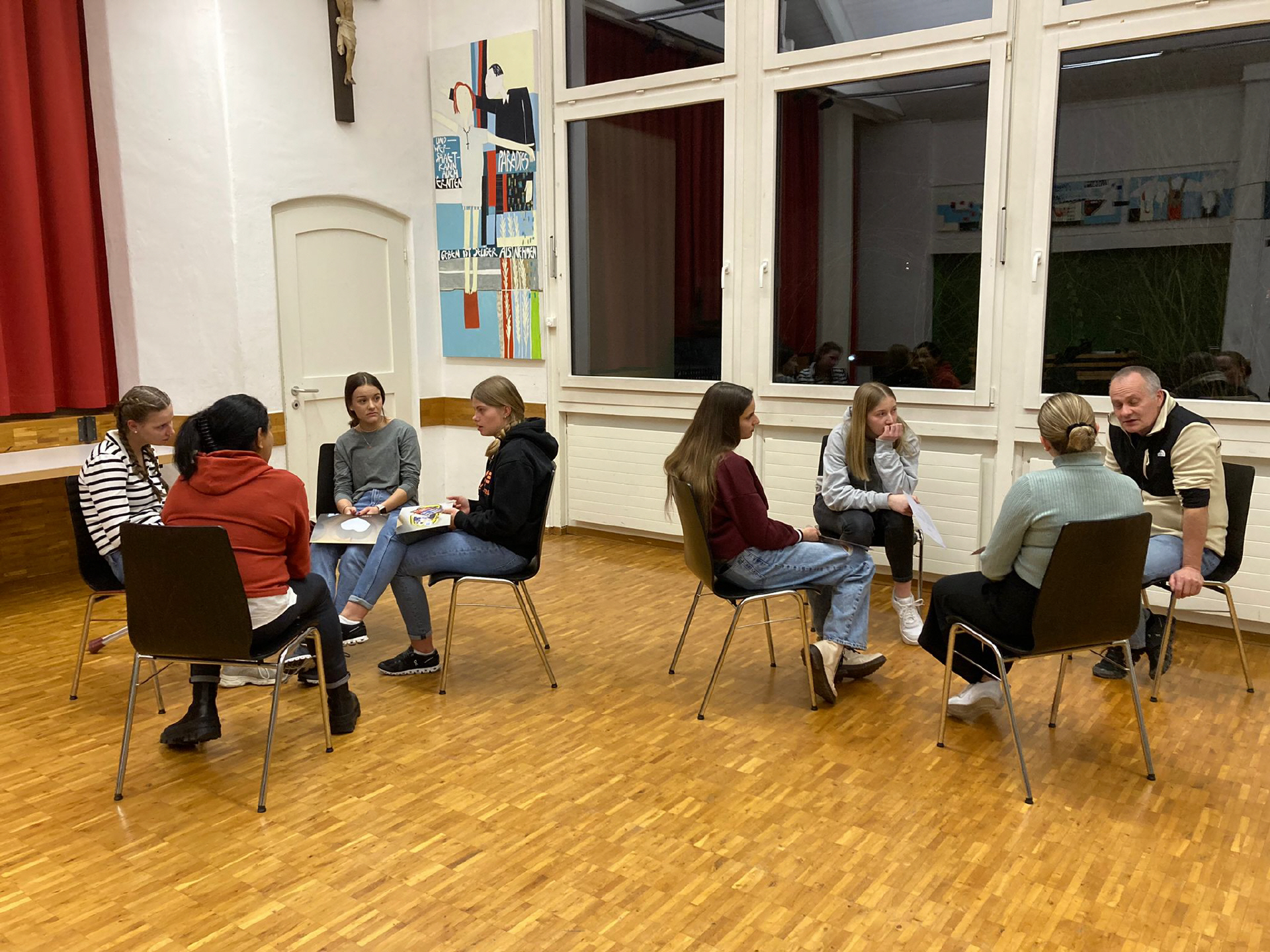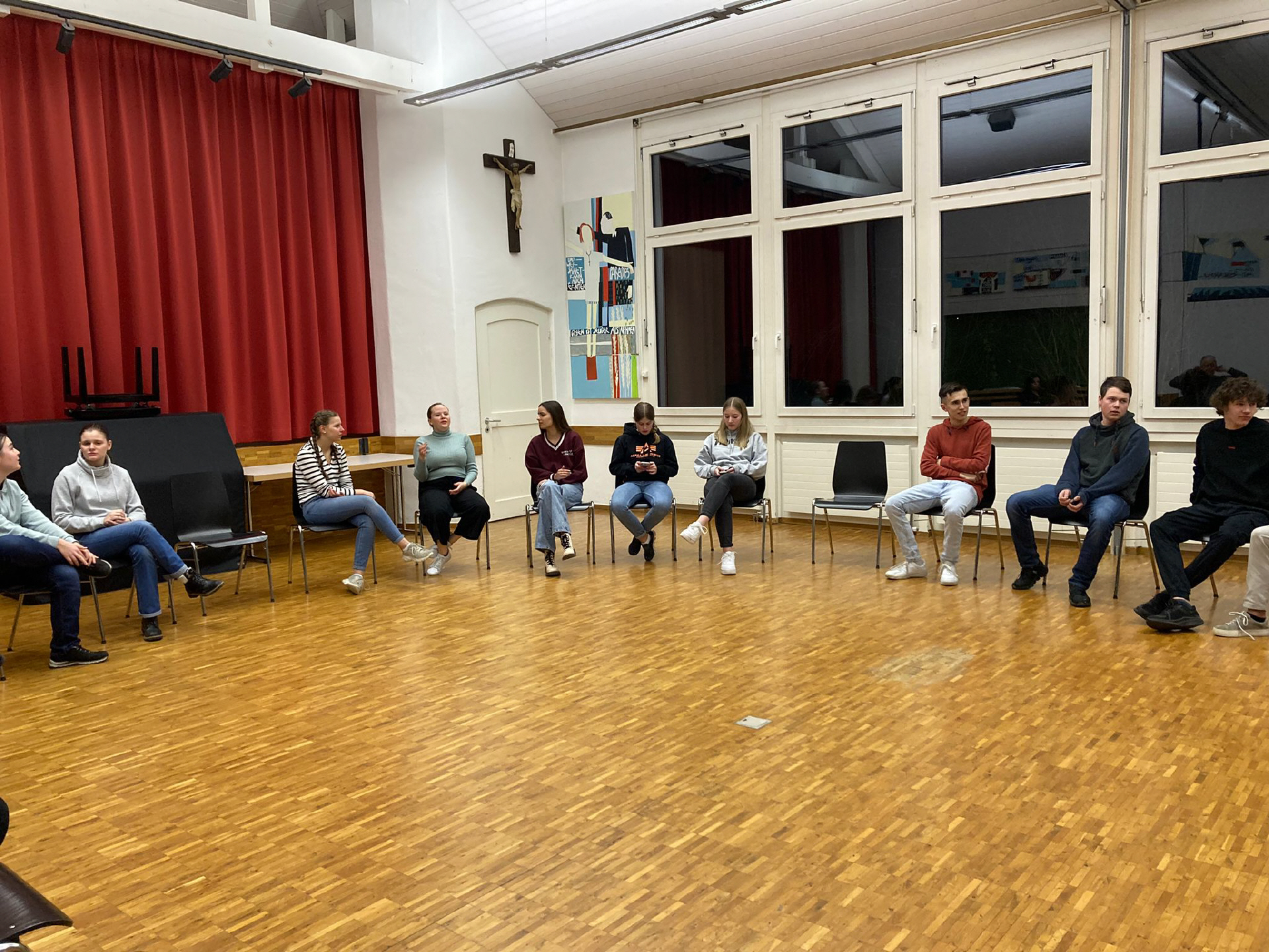 Sie sind hier: Startseite » Firmung » Fotogalerie » 2023 Warum Firmung und Glauben? Startabend Firmkurs Rosenaktion